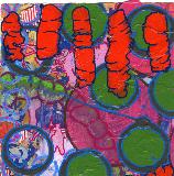 This series of process oriented paintings starts with a stroke, pour, spray , or smear of color, which is then reacted to.