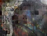 Multi-layered works featuring acrylic paint, found objects and craft materials.