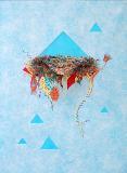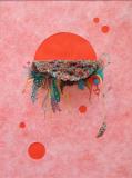 fringed fabric & acrylic on Lutrador over colored paper
