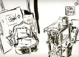 Recently I saw a small painting in the Louvre by a student of David, Leon-Mathieu Cochereau, "Interior of the Studio of David". The painting depicts 12 students of David's engaged in various aspects of painting in the decidedly unglamorous and unassuming environment of David's studio. Each student is completely absorbed in his activity, mixing paints, drawing from the model or reaching up to take an empty canvas from a shelf. Cochereau's modest painting is a revelation, offering a model for the state of absorption I seek to experience in my studio practice.